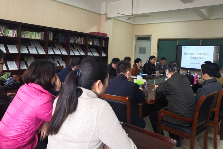 本网讯(教科院 王道阳)2019年3月28日下午,心理学专业的校级教学名师、博士生导师赵必华教授在赭山校区田楼8409教室举行了《测量心理学》中“测量的信度”的本科教学示范课,授课对象为2016级心理学专业学生。学校及学院教学督导组专家、学院领导、部分中青年教师及心理学专业全体教师共同观摩了此次示范课。