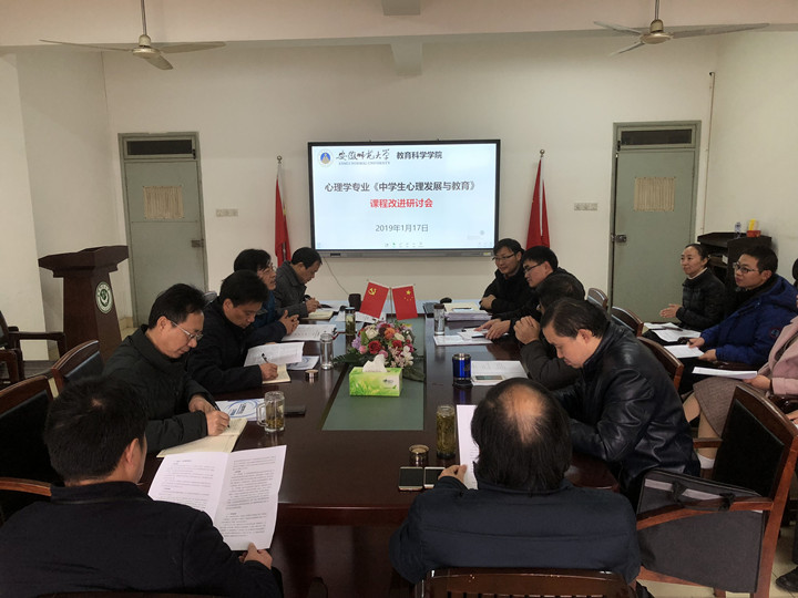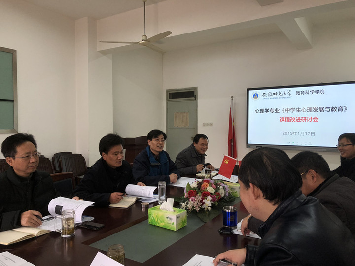 本网讯(教科院 王道阳)1月17日上午,365英国上市官网心理学专业《中学生心理发展与教育》课程改进研讨会在学院三楼308会议室举行。安徽师范大学党委常委、副校长毕明福全程参加了研讨会,学院党委书记方泓、教学副院长辛治洋以及心理学专业全体教师参会,院长桑青松主持研讨会。