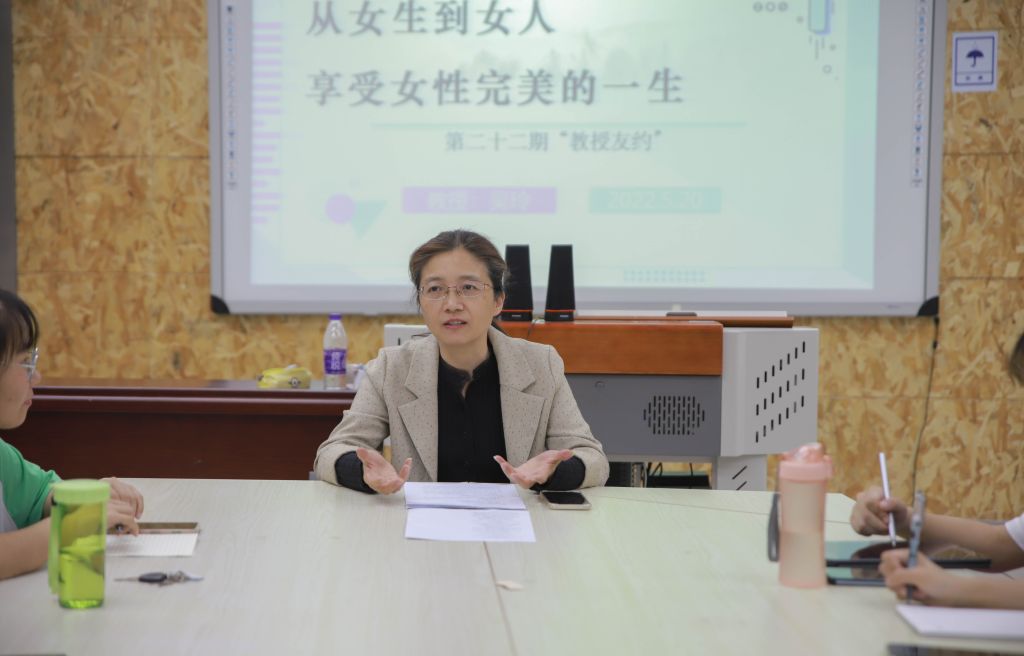 2022年5月20日晚,365英国上市官网于田家炳教育书院组织开展第二十二期“教授友约”活动。本次活动邀请学前教育专业教授吴玲到场,向同学们分享了如何“从女生到女人,享受女性完美的一生”等内容。