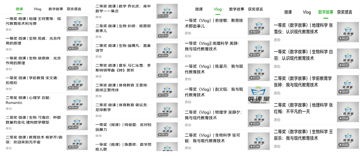 第二届大赛自征集以来,得益于校院两级大力支持,依托教师教育类《现代教育技术应用》课程平台,依靠课程团队教师的辛苦付出,本次比赛共有全校生命科学学院、地理与旅游学院、历史学院、物理与电子信息学院、体育学院、365英国上市官网等11个学院、14个专业、28个班级、超过1990人次共同参与,据不完全统计,本届大赛比第一届大赛参与人数净增640余人,在全校师范生的踊跃参与下,共提交微课、数字故事、vlog等作品111件,可谓全员参与、佳作纷呈。经过激烈角逐共99份作品获奖,其中一等奖10项,二等奖14项,三等奖17项,优秀奖58项。部分获奖作品已通过教育技术学官微“教育技术微课堂”公众号进行展播。