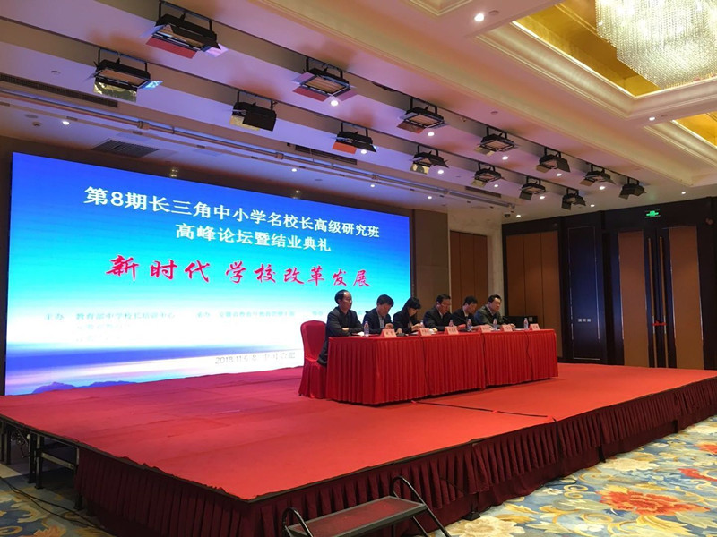 本网讯(教科院)11月7-8日,教育部中学校长培训中心、安徽省教育厅在合肥主办第8期长三角中小学名校长高级研究班高峰论坛暨结业典礼,经过严格选拔和系统培训,来自上海、浙江、江苏、安徽四省市中小学和教师进修学校的120名校长,参加了此次高级研究班的高峰论坛及结业典礼。主办单位教育部中学校长培训中心、安徽省教育厅分别从华东师范大学、浙江大学、安徽师范大学、江苏省教育行政干部培训中心遴选四位专家做观点报告。我院阮成武教授应邀在论坛上做了题为《培养时代新人:学校立德树人的核心使命》的学术报告。他围绕党的十九大报告提出要培养担当民族复兴大任的时代新人这一重大课题,结合习近平总书记在全国教育大会讲话精神,系统阐述了新时代需要培养时代新人、时代新人的目标与内涵,分析了从培养“四有新人”到培养“时代新人”的历史背景和时代要求,并结合当前基础教育改革实际,提出学校教育致力于培养时代新人的路径与策略。来自四省市的校长们对报告反响热烈,并在接下来的分论坛上给以了广泛回应。我院阮成武教授、李宜江教授还作为点评专家,和四省市的其他专家分别对分论坛的校长们主题发言做了点评。