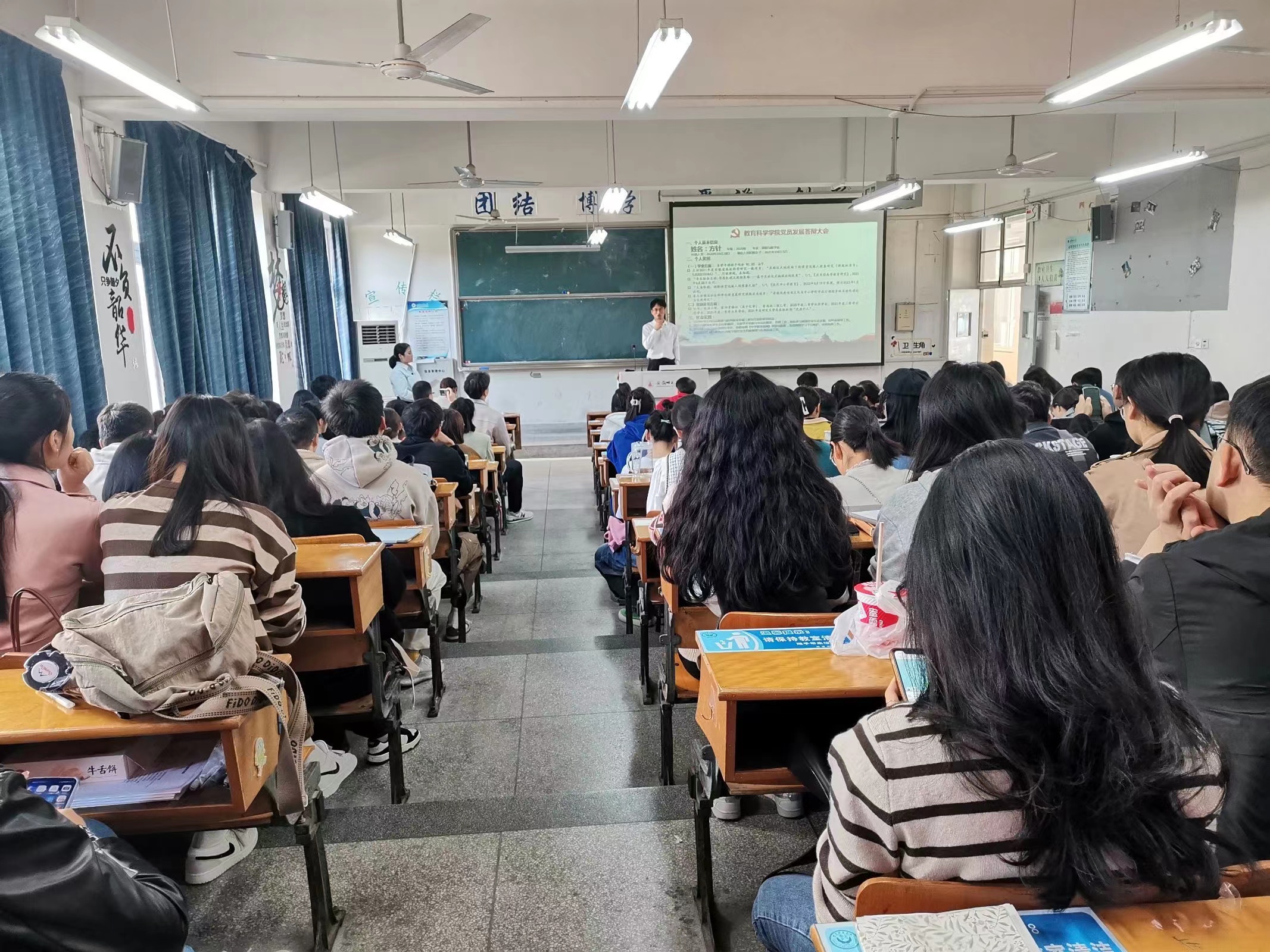 本次答辩大会有来自四个研究生支部的15名拟发展对象参与答辩,15位答辩者按照抽签顺序依次进行一分钟自我介绍、抽题回答党的相关理论知识、现场回答有关提问等三个环节,答辩后与会人员对答辩人给与评分。答辩活动结束后,各支部工作人员对答辩人答辩成绩进行分数统计,并在研究生党支部公示。据悉,近期各党支部将对参与答辩人员进行综合考察,讨论确定发展对象人选,待上报学院党委审批备案后正式列为本轮发展对象。
