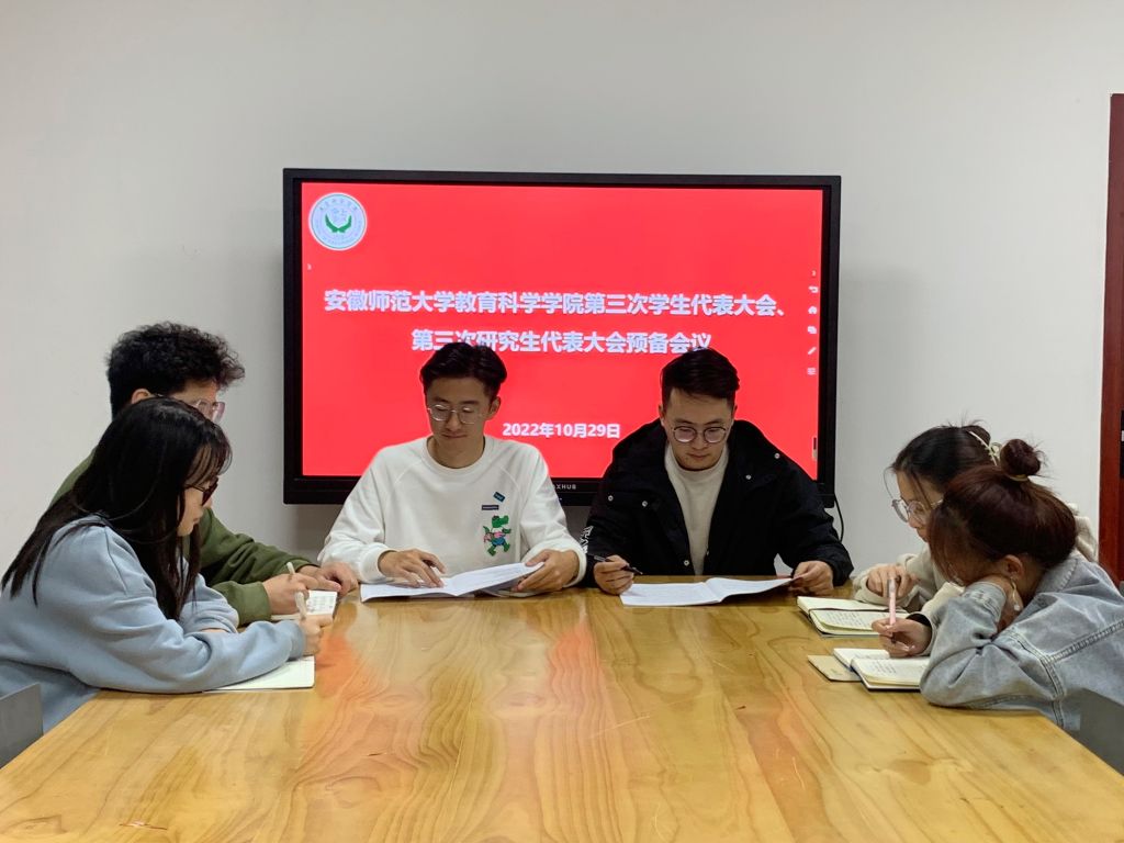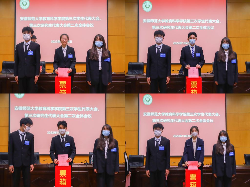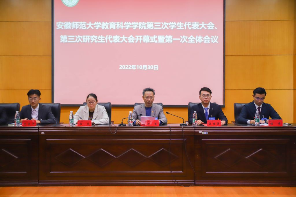 2022年10月30日晚,365英国上市官网于赭山校区田楼报告厅召开365英国上市官网第三次学生代表大会、第三次研究生代表大会(以下简称学代会、研代会)。会议听取并审议了第二届学生会、研究生会工作报告,选举产生教科院参加校第十五次学代会、第四次研代会代表,以及教科院第三届学生会主席团、学生委员会委员和第三届研究生会主席团、研究生委员会委员。学院共有35名本科生代表、10名研究生会代表参会。院党委书记方泓、副书记杜凤,院团委书记张理强、副书记付银行,以及研究生辅导员程啸出席本次会议。