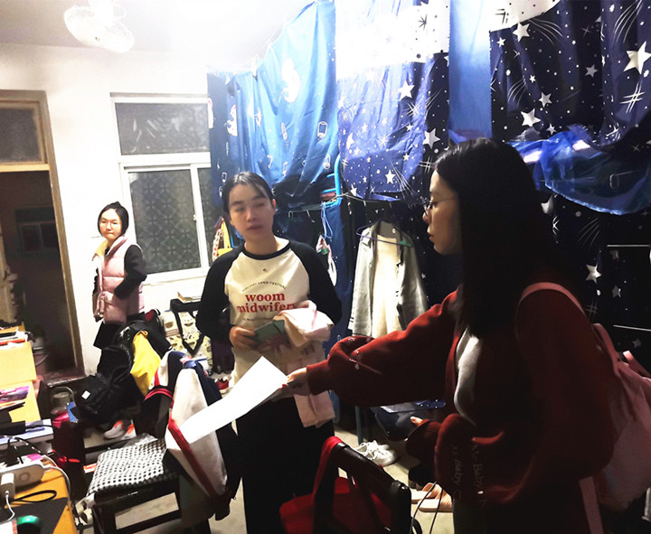 本网讯(文/马妮 图/李艳)为排查秋季安全隐患,切实做好学生宿舍安全工作,倡导学生文明住宿,推进平安校园建设,10月18日下午,研究生管理办公室教务员叶方舟老师、研究生会主席王清涛、副主席房聪等带领研会生活部成员组织开展了秋季安全查寝工作。
