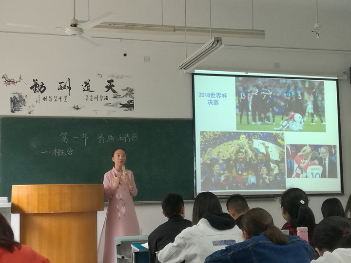 全莉娟副教授讲授的内容为师范专业《中学生心理发展与教育》课程中“情绪和情感”这一主题。在课堂导入阶段,全老师让同学们利用10秒钟的时间来体验一下此刻的情绪,并彼此分享他们的主观体验以及原因,成功激发了学生对这一心理现象的兴趣。接下来,全老师从情绪和情感的涵义、情绪的构成、情绪的功能以及情绪的表达等方面逐步展开教学,内容安排循序渐进,课件制作精美,讲解深入浅出,使学生们对“情绪”有了更全面的认识和更深刻的“体验”。在整个教学过程中,全老师教态优雅、亲和、大方,与学生的互动形式多样,并且注重联系生活实际和本领域前沿研究成果,这都充分展示了她深厚的教学和学术功底。