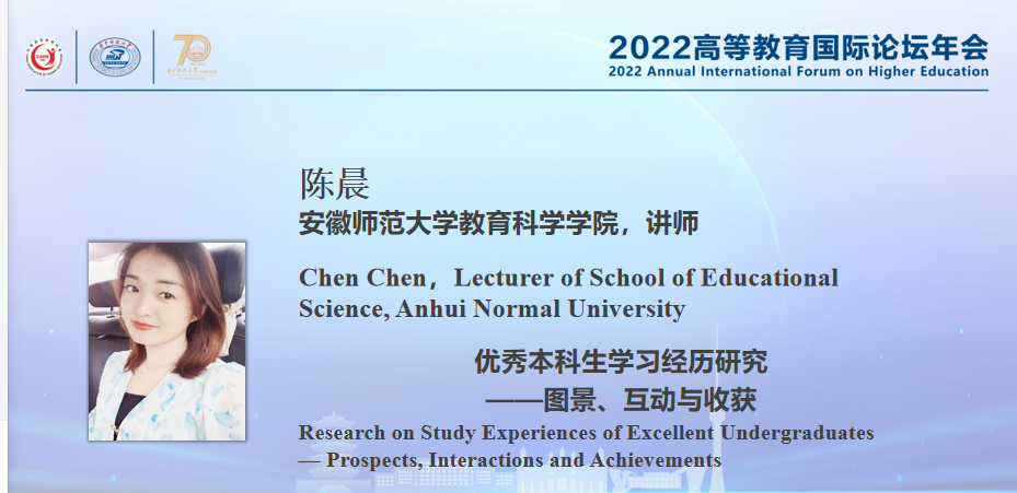 11月25—27日,陈晨应邀参加在武汉召开的“2022高等教育国际论坛年会”。会上,中国高等教育学会副会长、秘书长姜恩来研究员宣读了“中国高等教育学会学术创新计划——高等教育学博士学位论文文库”的入库名单,中国高等教育学会副会长邬大光教授为入库作者颁发纪念牌。随后,陈晨又在博士生论坛上发表了论文报告。