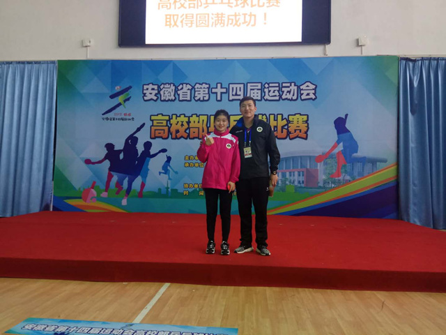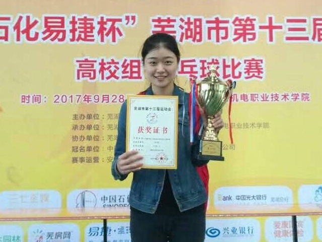 台上三分钟,台下十年功。比赛前的她不忘认真准备,每周五次的训练,两个校区来回奔波的辛劳不足以成为她前进的阻碍。教练为了磨练她们的意志力,让她们在三月的操场上跑步十圈,虽然每个人都气喘吁吁,但一次次的“魔鬼”训练为她们在后来的比赛的成功打下了坚实的基础。功夫不负有心人,从2017年校乒乓球比赛赭山校区女子单打第一到2018年安徽省省运动会高校组公体组女子单打三等奖都是她努力的回报。