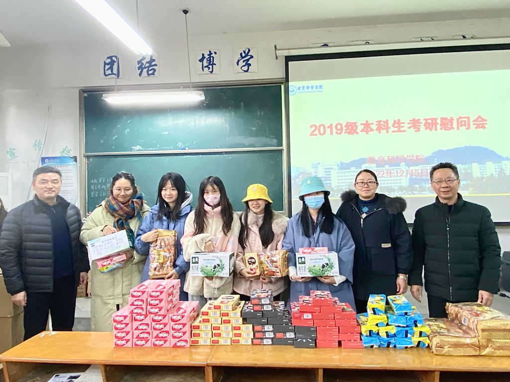 随后,学院领导老师给同学们发放了慰问品。丰富的礼品种类旨在为同学们补充营养和能量,饱含了学院对考研学子浓浓的关爱和殷切的期盼。同学们也在会后对学院领导老师的关心表达了感激之情,并表示将带着老师的关怀,迎难而上,争取佳绩,为学院争光添彩。