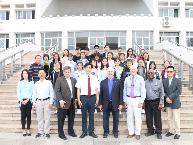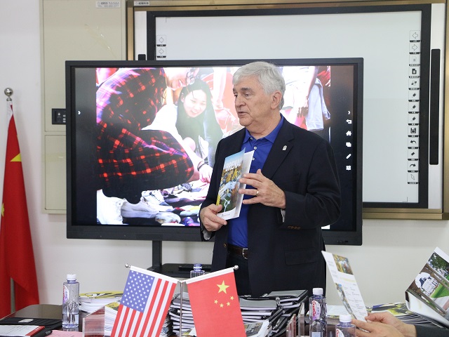本网讯(教科院 郭文静 郝婧婧)10月8日上午,365英国上市官网2017与2018级学前教育(中外合作)专业本科生在学院三楼会议室欢聚一堂,热烈欢迎美国布莱诺大学代表团一行访问我院。出席本次见面会的有布莱诺大学校长Schrader、校董事会主席Miller、副校长Eck以及教育学院院长Eugene老师;我方党委书记方泓、院长桑青松、党委副书记张如华、副院长辛治洋、中美学前专业建设顾问郑金泽、国际教育学院王曌婧、学前中美专业负责人赵学菊、18级辅导员程啸等参会,会议由院长桑青松主持。