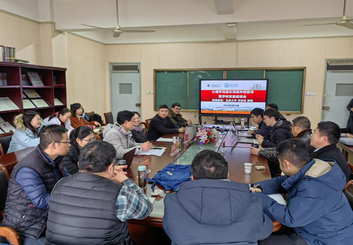 2月10日下午,学院在田楼408会议室组织召开心理学高层次课题申报指导会暨心理学科发展研讨会。特邀北京大学心理学系苏彦捷教授参与指导,研究生院桑青松院长,教科院李宜江院长,心理学葛明贵教授、宣宾教授、方双虎教授、赵必华教授,韩建涛副院长以及心理学专业众多青年教师参会,会议由桑青松院长主持。