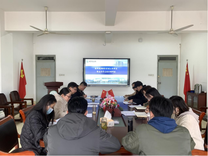 会上,各位辅导员分别介绍了各自工作安排,结合近期安全隐患排查和春季学生思想调研汇报交流了学生学习和生活近况。大家讨论通过学院2023年学团工作要点和运行表,各位辅导员认真梳理了本学期计划和安排,特别是近期重点工作,扎实推进毕业班考研面试辅导、就业、春季心理测量约谈等相关工作。
