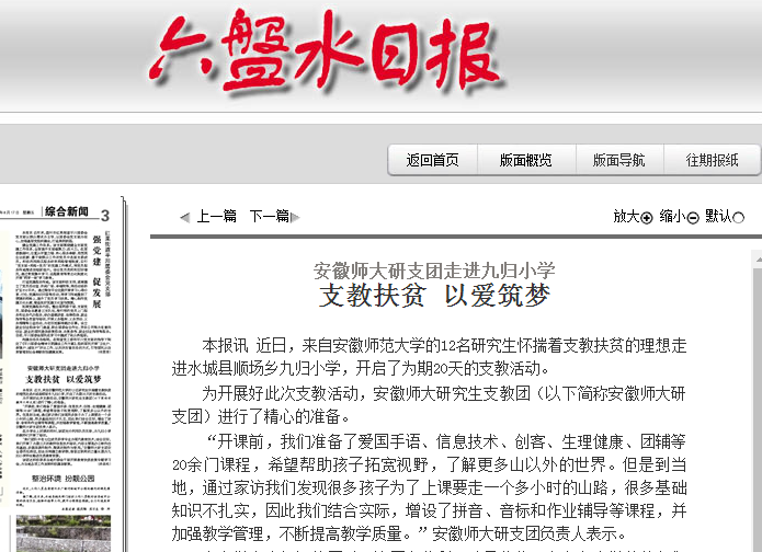 为开展好此次支教活动,安徽师大研究生支教团(以下简称安徽师大研支团)进行了精心的准备。