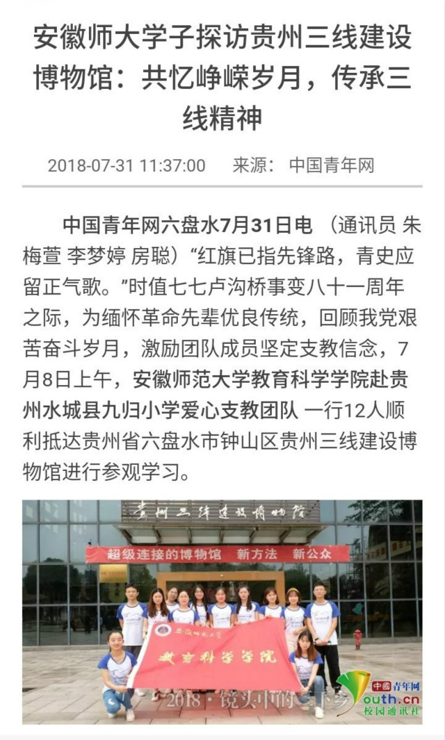 饮水思源,不忘历史,追忆三线。习近平总书记多次强调“历史是最好的教科书,对我们共产党人来说,中国革命历史是最好的营养剂,多重温这些伟大的历史,心中就会增加很多正能量。”此次活动结束之后,成员们纷纷表示要以实际行动继承和发扬老一辈共产党人的奋斗之心和奉献热情,不畏艰难困苦,充分发挥青年党员的先锋模范作用,在火热的青春中放飞支教梦想,在拼搏的青春中成就事业华章。
