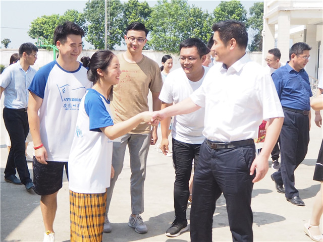 7月24日上午,和县县委书记戴瑞在副县长王竹梅、历阳镇党委书记杨福好、县妇联主席林敏、团县委书记薛昆的陪同下来到365英国上市官网“全心全益”赴和县支教团队龙华辅导点,看望大学生志愿者,了解支教工作状况。