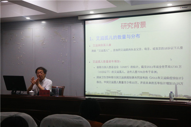 讲座伊始,赵教授便分享了大量自己在艾滋孤儿心理弹性研究领域的中的实际案例和真实感受,初步描绘了艾滋孤儿的生存现状。赵教授从研究背景、研究历程、研究结果和未来展望四个方面展开本次报告。他指出,艾滋孤儿承受了很多社会拒绝和歧视,在情绪、行为和社会适应方面与一般儿童是存在差异的,如何去调适艾滋孤儿的心理健康状况显得尤其重要。赵教授详细介绍了自己的研究历程,从一般的问卷测量到实验干预,再到认知执行功能的测试,其间不断克服实际困难,并最终取得了丰硕成果。赵教授指出,以长期追踪研究为支撑,未来将运用基因检测技术探索基因与环境的交互作用对弱势儿童的影响。