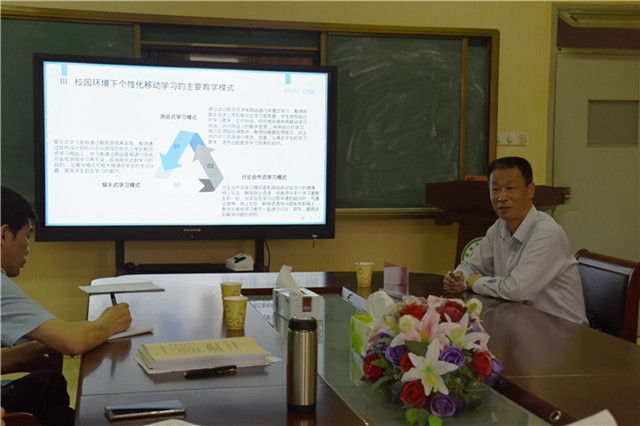 本网讯( 许文齐/文 苗艳侠/图)2018年6月1日下午4点,中国科技大学教授、安徽信息工程学院院长吴敏应邀来我院做一场题为“基于校园网的个性化学习”的学术报告,报告在我院408会议室举行,张新明教授、刘和海副教授、王清副教授、许之民副教授、叶方舟老师及部分教育技术学专业研究生到场聆听。