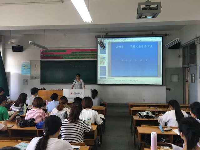 本网讯(教科院 张志华)2018年5月16日上午,我院学前教育专业童慧玲副教授在田楼8411教室举行了本科教学观摩课。童老师今天的课程内容是《学前卫生学》中“学前儿童营养卫生”这一章。在第一节课上,她条分缕析地讲授了“营养概述”的相关内容。校督导团专家、学院院长助理、学前教育系教师和部分教育学、心理学专业的青年教师旁听了童老师的授课。