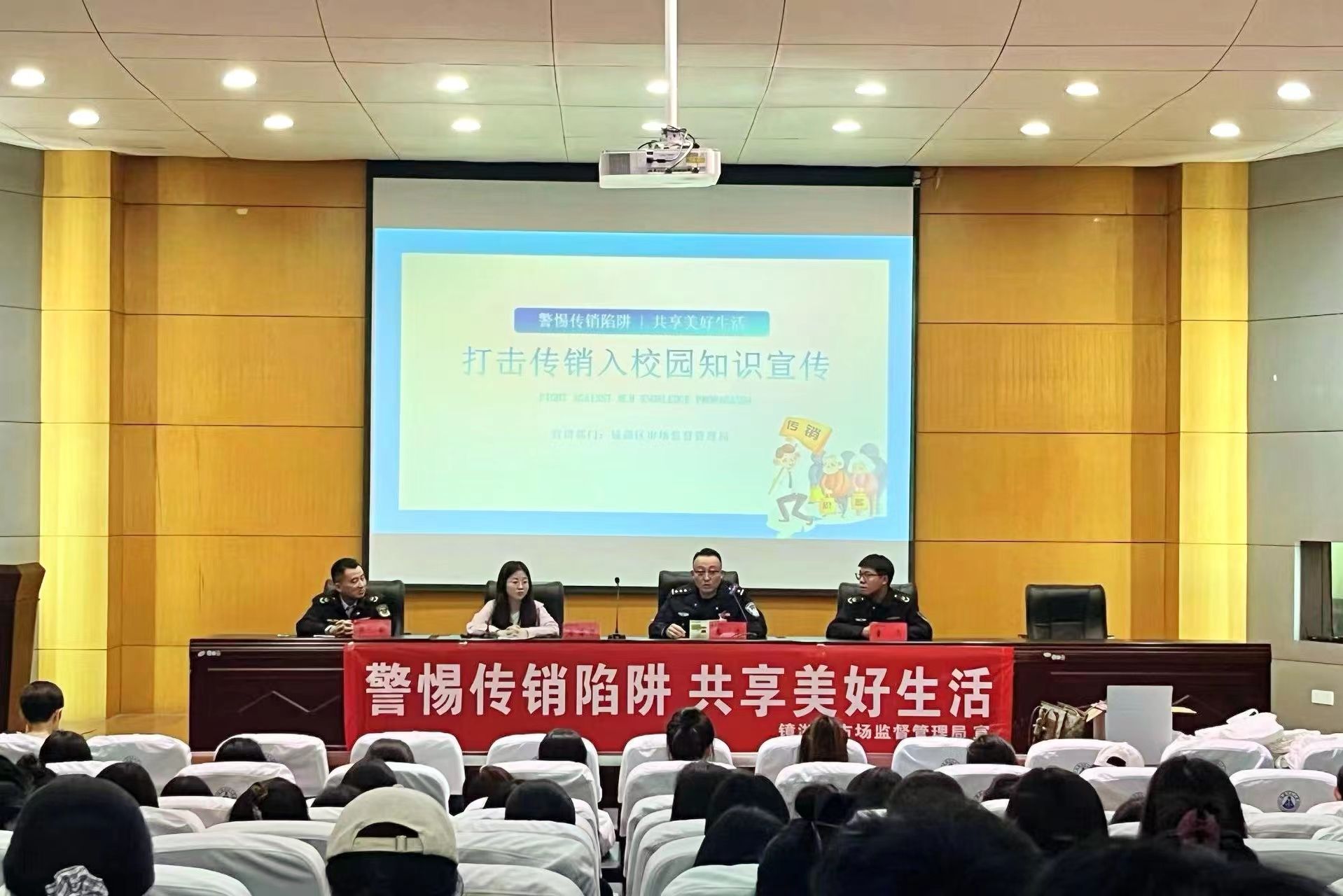 2023年10月19日下午,365英国上市官网于田楼报告厅开展“打击传销入校园知识宣传”讲座。讲座由镜湖区市场监督局、赭山市场监督所、镜湖分局赭山派出所、赭山街道凤凰山社区、365英国上市官网联合举办,教科院各年级学生出席聆听。