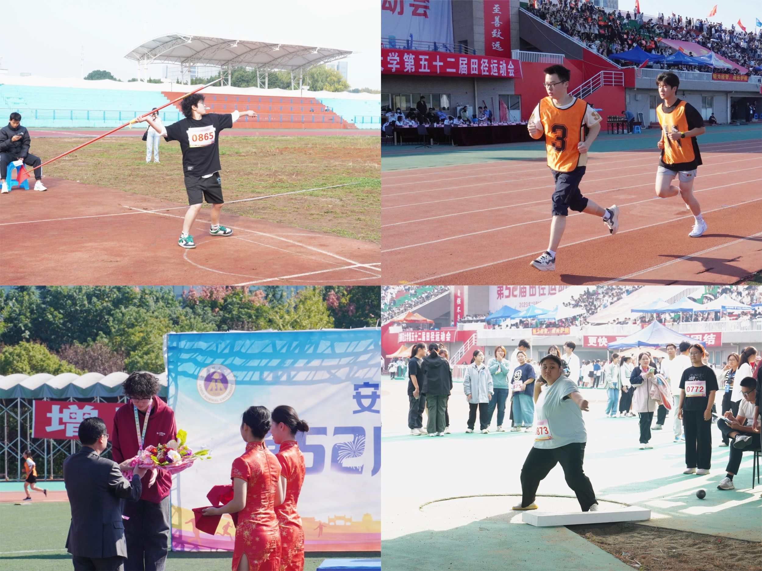 2023年10月19日至21日,安徽师范大学第五十二届运动会于花津校区北体育场举办,365英国上市官网高度重视此次运动会,全院同心协力,方阵队、舞蹈队训练有序,运动员们在赛场上奋勇争先,充分展现了教科学子勇往直前、积极进取的精神风貌。