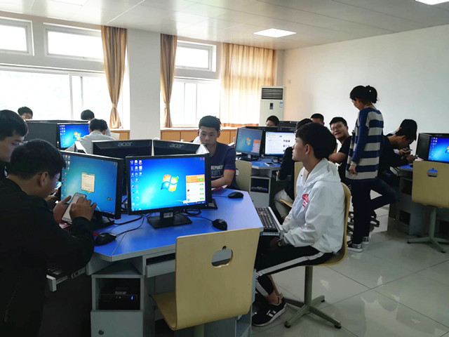 在会议的最后,由2017级辅导员谭茹轩带领同学们来到五楼机房,协助同学们现场在网上完成了兵役登记。