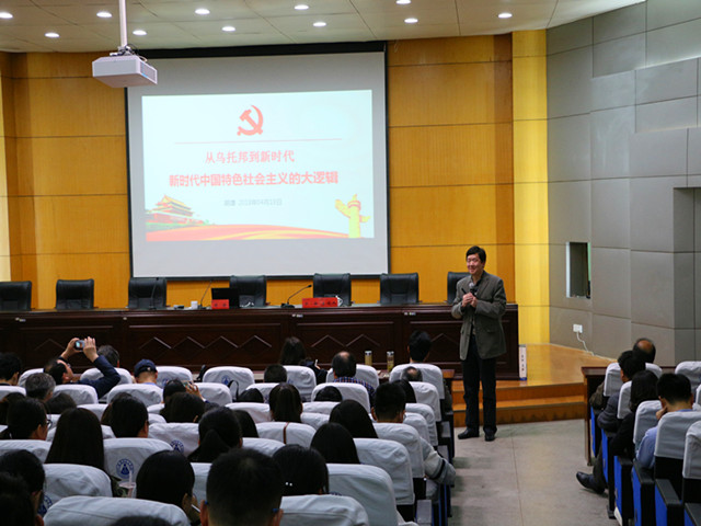 (本网讯 魏良)为推动学院十九大精神学习培训工作深入开展,进一步活跃学习氛围、提升学习质量,4月18日下午,我院学习贯彻党的十九大精神培训班开班仪式在田楼报告厅举行,校党委宣传部部长胡靖在开班式上为全院教职工和学生党员带来了《从乌托邦到新时代——新时代中国特色社会主义的大逻辑》的专题讲座,会议由院党委书记方泓主持。