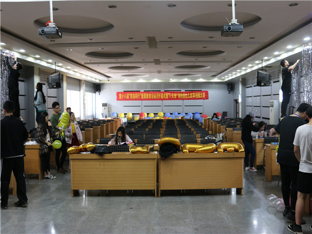 3月31日上午,院团委学生会工作人员积极参与到会场的布置、仪器的调试等工作中来。今年的会场布置充满了童真童趣。有趣的剪纸图案、银色的彩带、卡通形象的气球……将整个会场装扮成童话的世界。这一切都在等待着小朋友们的到来。
