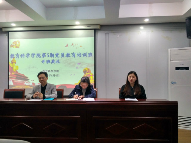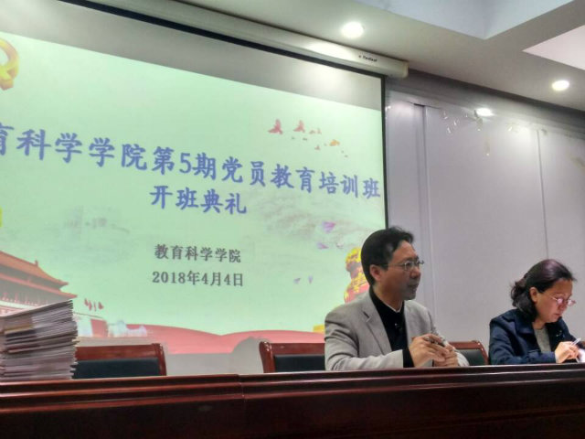 本网讯(教科院 曹玲玲 谭茹轩)为进一步加强我院学生党员的培养教育工作,锤炼党员党性修养,提升学生党员队伍的整体素质,4月4日下午,院第五期党员教育培训班开班典礼暨第一次教学活动成功举行。院党委书记方泓,党委副书记张如华,分党校班主任谭茹轩及学院各专业本科生和研究生共40余名学员参加了典礼。典礼由培训班班主任谭茹轩主持。