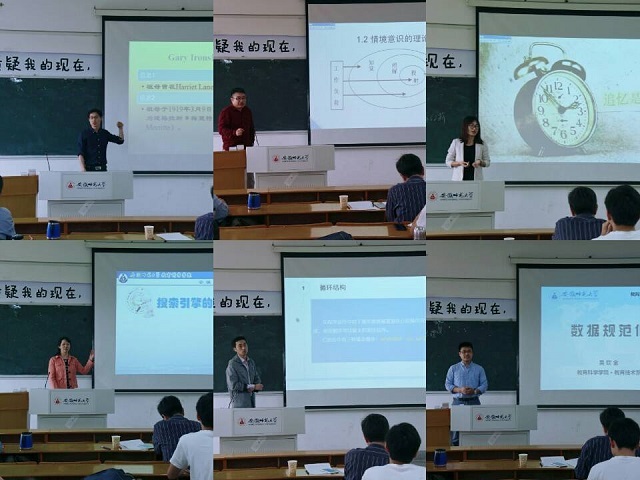 随后,黄时中围绕“青年教师微课教学比赛中应注意的几个问题”作专题讲座。黄时中依据近几年参与评课活动的经验,结合以往大赛中优秀案例,从微课教学比赛中的自主选题、新课导入、教学方法、教学状态和课件制作五个方面进行了切实的细致分析。参赛教师与观众表示获益匪浅。