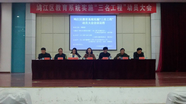 本网讯 教科院 吴支奎 为进一步推进我院与鸠江区政府实施“名校名师名校长工程”的战略合作进程,3月17日上午,学院桑青松院长应邀出席了鸠江区教育系统实施“三名工程”动员大会。鸠江区政府褚亚红副区长、鸠江区教育局班子成员及各科室负责人、全区各中小学及公办幼儿园校(园)长、书记,副校(园)长、副书记,教导主任、政教主任及大队辅导员,各学科教研员、区学科大组组长、区学科带头人,市级及以上骨干教师等400余人参加了此次动员大会。会议由鸠江区教育党工委书记、局长胡晓莲主持。