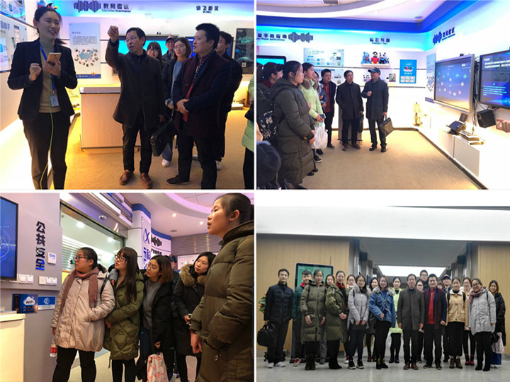 午后,我院师生在讯飞员工引导下,参观了位于公司A1楼的人工智能展厅。全面了解了科大讯飞语音云监控系统(全国应用开发总览和平台)、讯飞灵犀软件(语音翻译、购票、方言语音识别、智能输入)、同步翻译(语音转文服务)、智慧居家、汽车语音助理、全国公安系统声纹数据库等。着重观看了智慧教育平台中的智能批阅、精准教学、个性化学习等功能展示,领略了智教、智学、智考等教育信息化方面的最新应用。