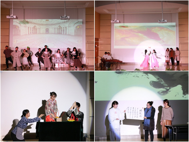 欣赏完了美妙的舞蹈节目,晚会的其他节目也同样的引人注目,同样的异彩纷呈。由格林童话《灰姑娘》改编的舞台剧《新灰姑娘传奇》,情节新颖独特,剧情夸张搞怪,令人捧腹,演员的精彩演出引来台下观众一片笑声和掌声。接下来演出的现代都市小品《占便宜》用轻松幽默的语调,自然得到的演出征服了观众,搞笑的男闺蜜,强势但坚守爱情的女友都给人留下深刻的印象。轻松过后,改编自鲁迅《祝福》的话剧又深深地牵动了观众的心,演员的动情演出,再现了祥林嫂悲惨的人生经历,启发了观众们对于作品的再思考。