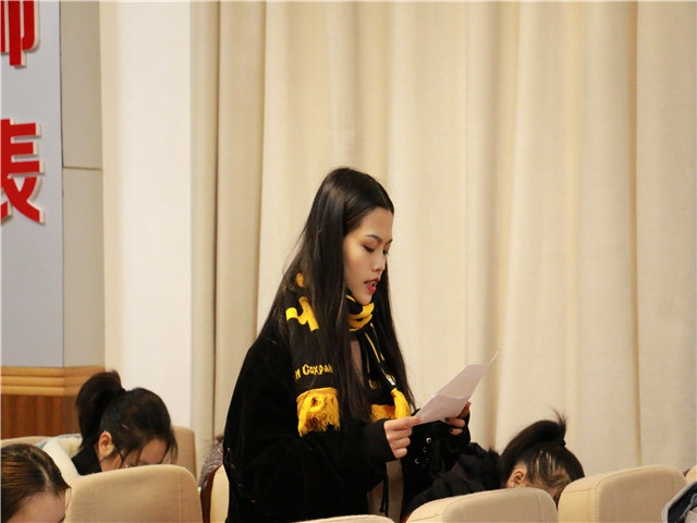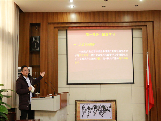 随后,莫大贡给在座的入团积极分子们上了一场别开生面的团史团章课程。他分别从共青团的标志、共青团的历史以及团章学习三个方面进行讲述。莫大贡细致的讲述了团旗、团徽、团歌以及团证的意义,在讲述团史中更是举例说明。同时,他还向同学们介绍了团章的相关内容,如团员的权利、团的基层组织、团的组织制度等等。在讲述的过程中,他提出相关问题引发同学们积极回答问题,如“共青团是什么时候成立的”“历史上有哪些名称”、“共青团现在已经召开几次代表大会”等等,入团积极分子们积极回答问题,使得现场气氛活跃起来,学习团章更加认真。