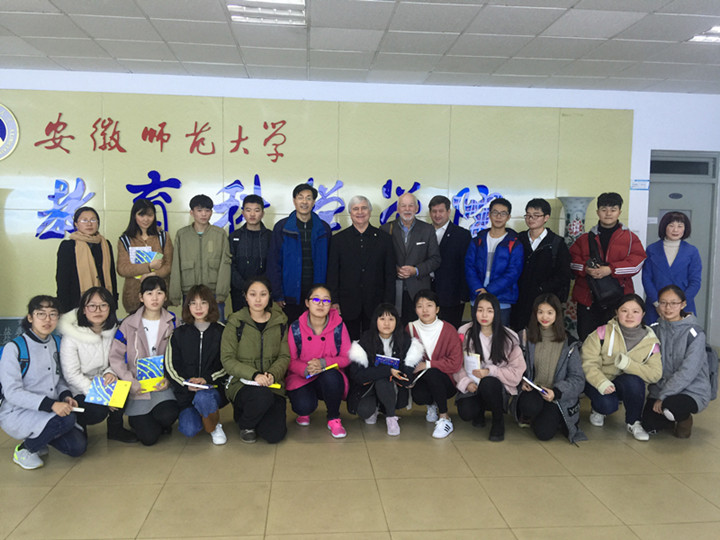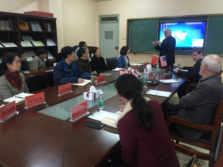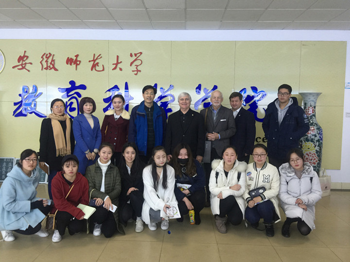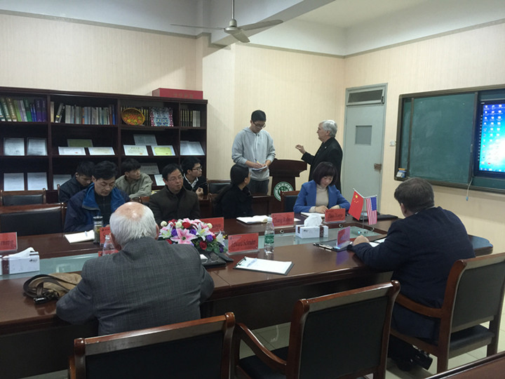 本网讯(教科院 马兴)12月4日,美国布莱诺大学校长Edward Schrader 、Peter Miller、Jim Eck一行来到365英国上市官网就中美学前专业人才培养问题与学院师生进行了亲切交谈。交流会由学院院长桑青松主持,学院党委书记刘晓宇、副书记张如华、副院长何海燕、院长助理周元宽、学前教育专业教师赵学菊、及2016级、2017级全体中美学前专业学生参加了此次座谈会。