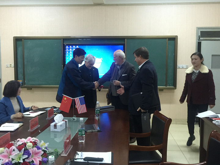 会上,布莱诺大学校长Edward Schrader 首先向大家介绍了他们的新任教务处长Jim Eck,他指出Eck在对外合作办学及高等教育方面有很丰富的实践经验,将会全权负责协助中美学前的学生在美学习事务。同时,他欣喜地介绍了第一批中美学前的同学在美学习的收获与成长,对于中方输送的优秀学生表示赞赏,在与第一批赴布莱诺大学学习的学院学生交往中,他们对后续的培养方案及学生指导做了相应的调整,将会力求为教科院学生在布莱诺的学习创造一个良好的环境。交流期间,Edward Schrader校长还与学生就在美学习的专业选修、学习旅行、饮食住宿包括人身安全问题进行了亲切交流。