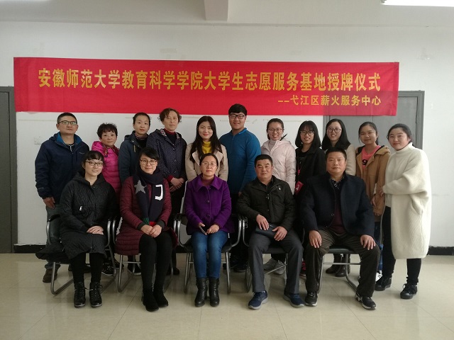 张如华代表安师大教科院感谢丽城社区和弋江区薪火服务中心给大学生提供了实践的机会,希望充分利用师大各专业的资源更好地服务孩子,以更加规范的管理避免不必要的伤害。为了使志愿者的服务更具有科学性,她希望志愿者能够多请教专业教师,努力付出,做到“全心全意,真心真意”,做一群既有爱心更有专心的“守梦天使”。在温暖的氛围里,在场的全体人员合影留念。
