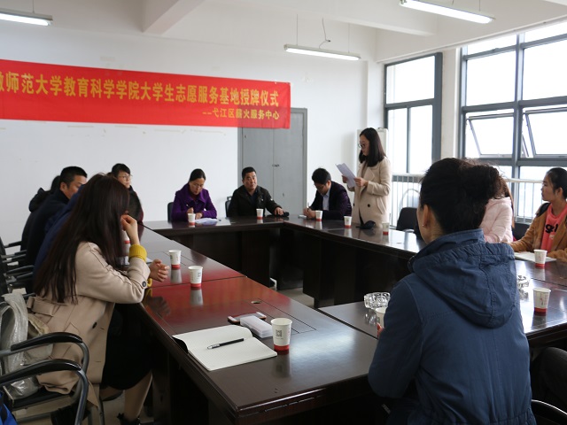 授牌结束后,王旸代表弋江区薪火服务中心发言。她表达了对师大教科院、社区、家长、志愿者的支持并表示将会继续以公益为目的,本着“给孩子一个快乐的乐园”的宗旨让孩子在快乐中得到成长。