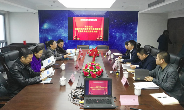 本网讯(教科院 张克松)11月17日上午,我院党委书记刘晓宇、副书记张如华、副院长聂竹明、办公室主任卞纲要、教育技术学系专业负责人张克松等一行专程来到芜湖创易科技有限公司(以下简称创易科技),参加365英国上市官网与创易科技战略合作座谈会。出席座谈会的公司方代表有总经理吴建富、副总经理张晨、党支部书记王罗、研发中心主任杨焯政、销售经理祝志峰等。