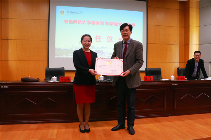 副院长聂竹明首先对顾青教授回到母校表示热烈欢迎并作了简要介绍。顾青教授任职于英国诺丁汉大学教育学院,现为英国比较与国际教育协会主席、《国际教师专业发展杂志》副主编、以及部分高影响力国际期刊编委等,在教师教育、教师发展等研究领域取得了诸多具有国际影响力的学术成果。随后,院长桑青松为顾青教授颁发客座教授聘任证书。