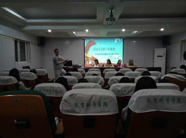 本网讯(教科院 郭俊俏 龚伟)为更好地调动培训班学员认真思考、学习和参与课堂活动的积极性,帮助同学们学懂理论、弄通知识、做实工作,教科院“入党启蒙教育”培训班创新开展“1+1” 教学模式,即主题汇报1小时,学习交流1小时。 11月2日晚,活动正式拉开帷幕。院党委书记刘晓宇,2017级本科生辅导员谭茹轩参与观摩。活动由学前教育专业本科生党支部书记龚伟主持。