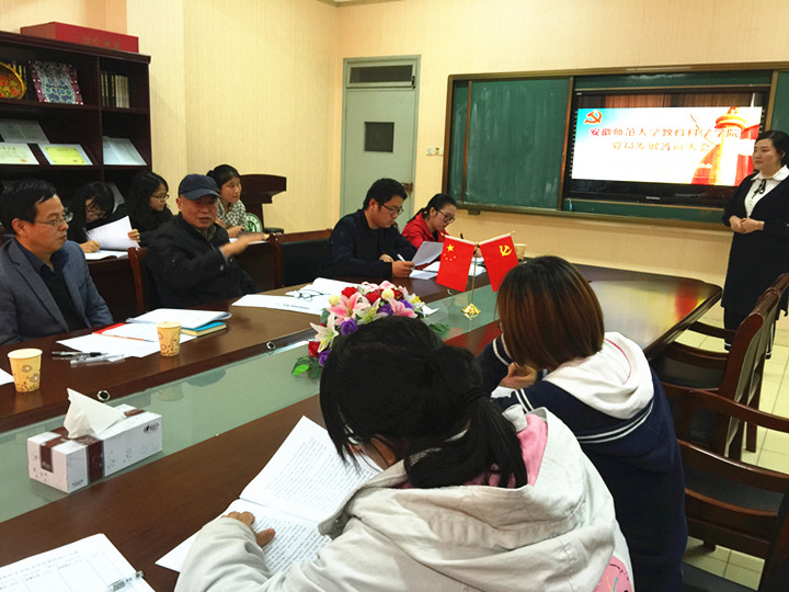本网讯(教科院 马兴 张皓南 )做好大学生党员发展工作有利于提高学生党员队伍整体素质,教科院数年来坚持将大学生入党答辩作为入党前的重要一课,加强对发展对象的党性修养考察。10月19日中午,学院按支部分别举行了2017年下半年研究生、本科生党员发展答辩大会。学院党委书记刘晓宇、党委副书记张如华、科研副院长聂竹明、院关工委常务副主任王在广及学生党支部书记共同组成答辩委员会对答辩者进行现场考察,支部全体学生党员、入党积极分子及部分普通同学参与了现场评议工作。