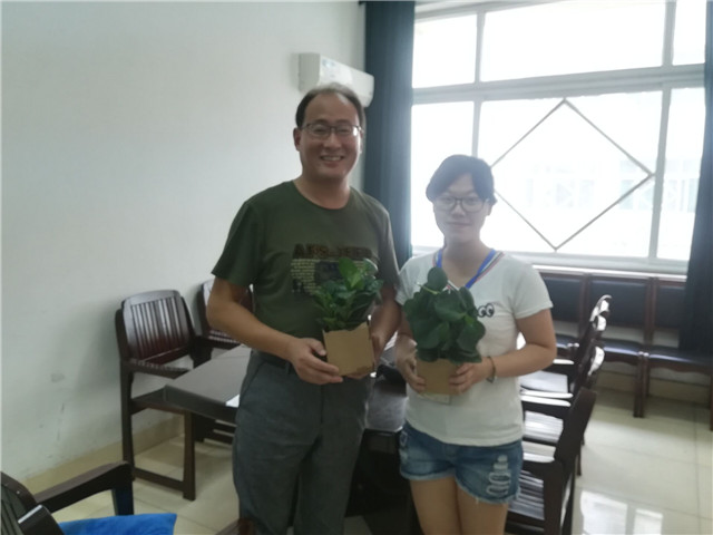 除明信片外,我院学子们为老师献上嫩绿的盆栽,以表自己的深深感激和祝福。老师脸上充满感动,除了感谢同学们以外,老师们还送上了新学期的建议与期望。这小小的盆栽仿佛就代表了师生之间浓厚的情谊,土壤尽全力将营养传送给植物,老师倾尽一生将知识传授给莘莘学子,愿这方寸之绿能为老师们的办公桌增添一丝美好!