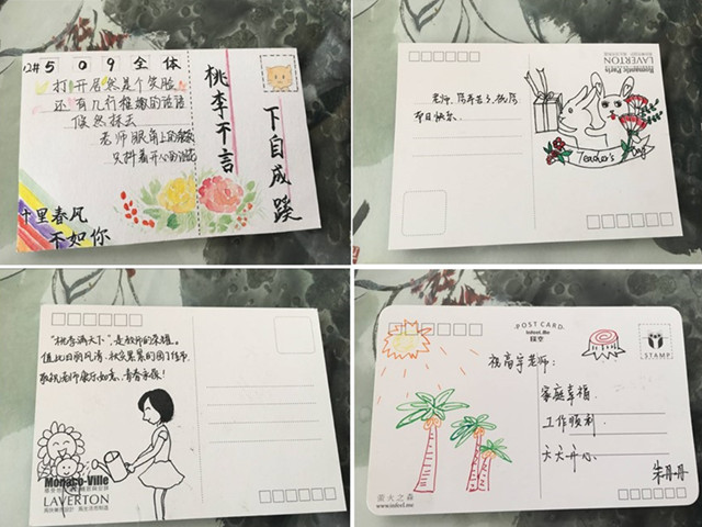 9月伊始,院学生会面向教科院全体学生征集教师节明信片,学子们积极参与此次活动。“桃李天下,下自成蹊。老师,谢谢您!”“春风十里,不如在师大遇到您!”一句句浓情满满的话语,一张张充满意境的明信片表达着同学们对老师们的感激之情。在教师节当天,由学生会成员将写满感恩祝愿的明信片发放到每一位老师的柜子,给每一位老师带来惊喜、送去温暖。