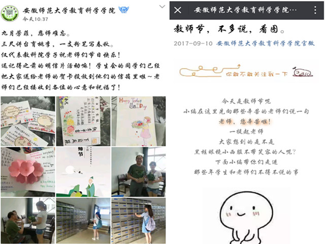 教师节活动的开展离不开线上的宣传,在教师节当天教科院官微、QQ进行了推送宣传。温馨的话语、点滴温暖,暖心教科!