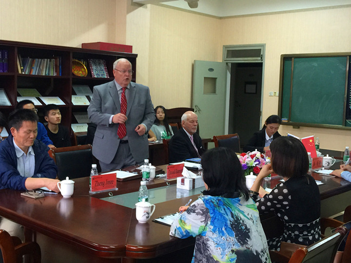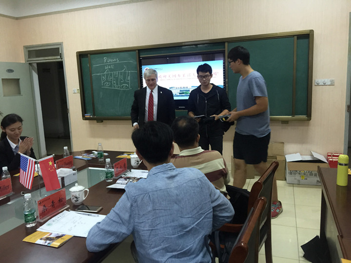 会上,布莱诺大学校长Edward Schrader 首先向大家介绍了布莱诺大学的基本情况以及中美学前专业的培养模式,他告诉同学们美方将在本学期专门派驻一名外教教师帮助大家准备赴美学习的相关资料,安慰大家不要太紧张。同时他也向大家展示了前面两届学生在美学习的情况,期望同学们能够采取多种方式提前了解布莱诺大学,做好相应的准备。