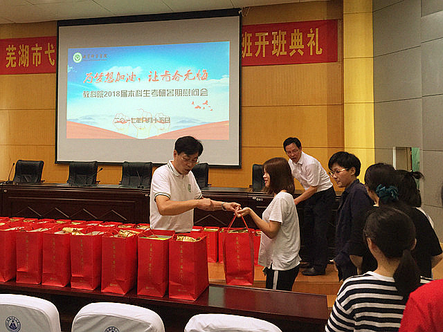 最后,学院领导也为考研学子们送上了慰问品,期望同学们在接下来的复习迎考过程中,再努一把力,再添一把火,争取金榜题名,为学院争光,为自己喝彩。