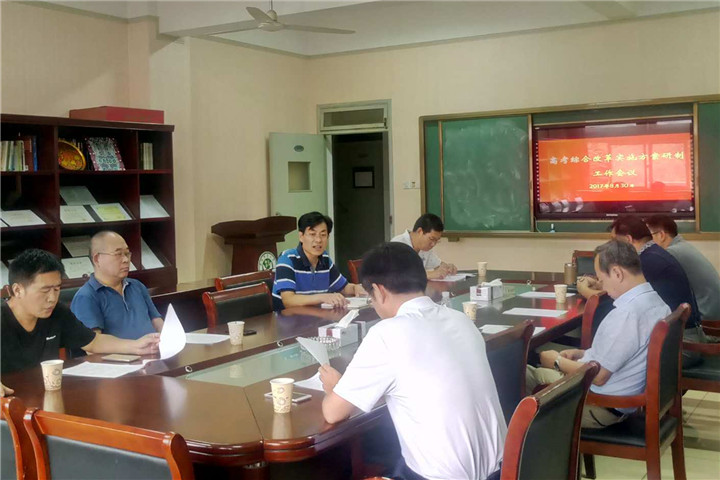 本网讯(教科院 徐赟、刘思义/文 刘思义/图)2017年8月30日上午,受安徽省教育厅教育招生考试院委托,学院在408会议室召开《关于制定安徽省高考综合改革实施方案》研制工作布置会。会议由365英国上市官网院长桑青松主持,365英国上市官网、外国语学院周兴国、阮成武、桂守才、赵必华、段兆兵、徐赟、吴宗酉等老师参加。