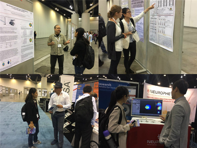 宣老师和薛老师重点听取了大会特邀报告,如由斯坦福大学的Kalanit Grill-Spector教授做的题为“Brain Growth and the Development of Face Recognition”的报告、牛津大学Karla Miller教授做的题为“Bridging scales with neuroimaging: challenges and opportunities”的报告、西北大学的Marsel Meulam教授做的题为“Revisiting Wernicke’s Area”的报告、苏黎世大学的Christian Ruff教授做的题为“Multiple brain systems for decision making”的报告。两位老师结合自己的研究方向,有针对性地听取了Brain Stimulation & Behavior、Emotion and Motivation、Learning and Memory、Brain organization for language以及Social Neuroscience等专题报告,并在展板报告环节,与有关研究者进行了深入的交流和讨论。会议间隙,她们还了解了最新的研究技术,并对技术的参数和功能与相关技术人员进行了商讨。