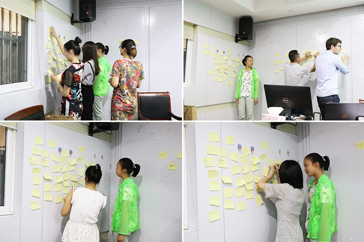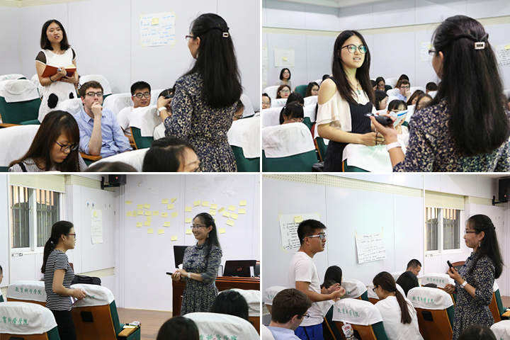在第一场报告中,尤汉·斯密斯博士同现场观众开展了一个别开生面的互动交流活动。首先他要求现场全体观众以“在中小学时期作为学生遇到的问题或困惑”为题思考并用便利贴纸出示于墙。随后,请现场以3-5人分为若干小组就其中部分问题进行思考并提出解决方案。最后,将各组讨论成果分别展示于报告厅两侧墙上,请全体离开座位相互参观并进行交流。尤汉·斯密斯博士以其独特的学术报告形式,与现场观众讨论了作为一名优秀的中小学教师如何应对课堂教学中的问题,同时也体现了互动研讨对加强学术交流的重要作用。现场互动频繁,气氛尤为活跃,引起全场师生阵阵掌声。
