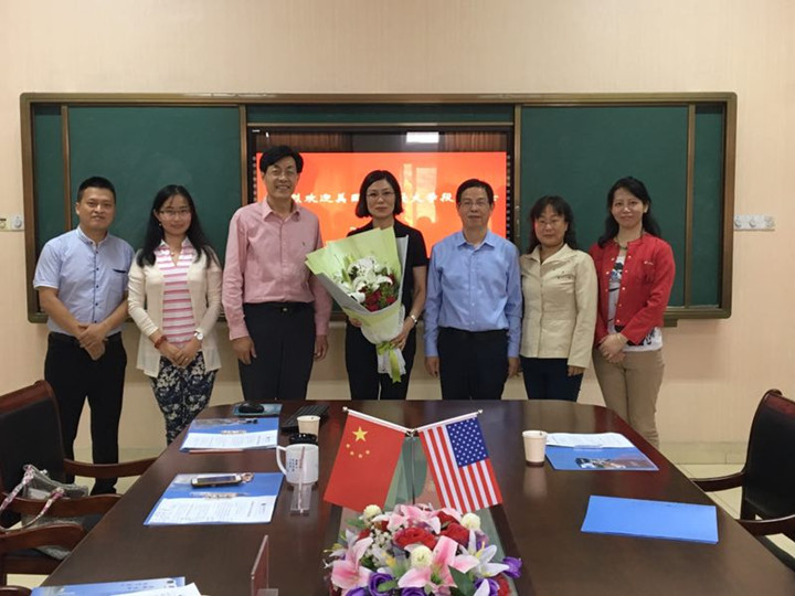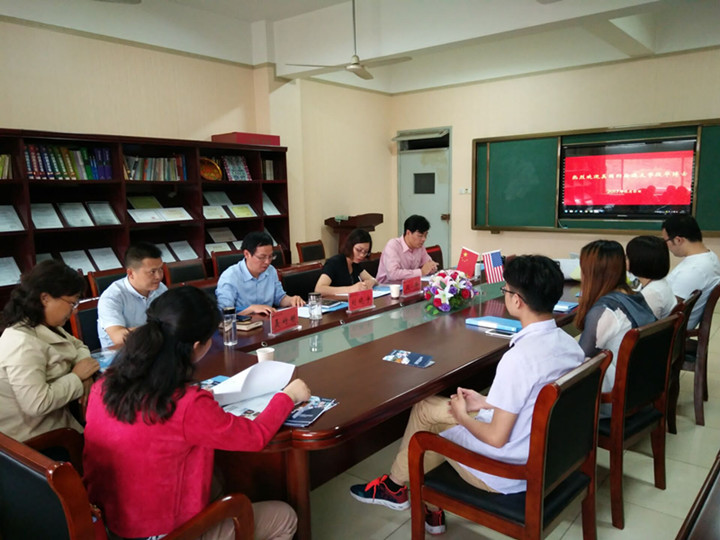 本网讯(教科院 薛梦婷)6月6日,美国约翰逊大学泰普勒教育学院段华教授来我院进行访问。学院党委书记刘晓宇、院长桑青松、副院长聂竹明、教育技术中美合作硕士点点长袁晓斌、刚从美国访学归来的教育技术系教师陶佳,美国田纳西大学教育技术学博士龙陶陶,以及14、15、16、17级教育技术学专业(中美合作)学生共同参加会谈。会议由桑青松院长主持。