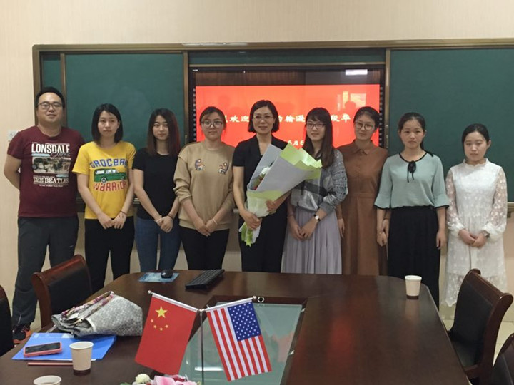随后,2017年即将赴美留学的16级中美班学生以及17级新生与段华老师进行了深入的交流与沟通,就留学准备、课程开设、就业方向等问题进行了咨询,段华老师对此进行了详细的介绍和解答,在此过程中,段华老师介绍了美国的当地文化,强调注重人文发展,创造独特人格魅力的重要性,希望留美学生培养独立自主学习和思考能力,并补充说明了生活中需要注意的细节问题,段华老师这种无微不至的关怀让在场所有学生倍感温暖。最后,段华老师与所有参加会议的同学合影留念,此次访问圆满结束。
